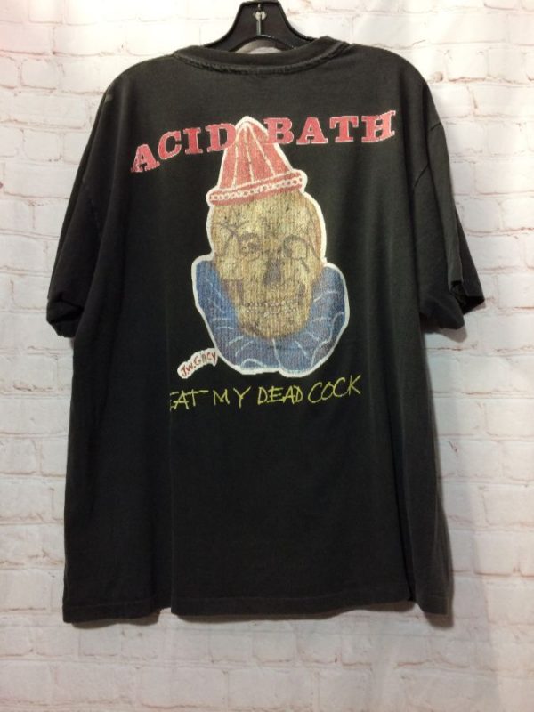 T-SHIRT SINGLE STITCH ACID BATH W/ J. W. GACY IN CLOWN OUTFIT & EAT MY DEAD COCK