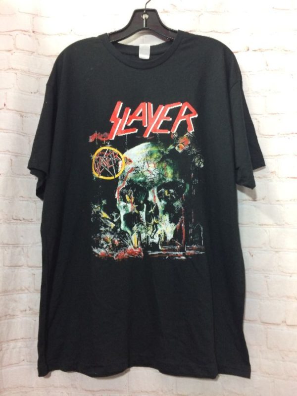T-SHIRT W/ SLAYER/SKULL & PENTAGRAM GRAPHIC DESIGNS