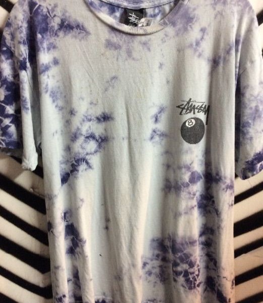 Vintage 1990s Stussy T-shirt, short sleeve, off-white shirt with purple tie-dye print, size L