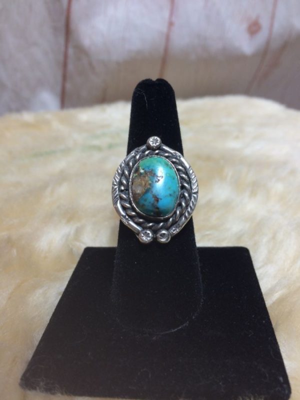 RING – LARGE OVAL TURQUOISE STONE – HEAVY SILVER SETTING – SIGNED S-STAR
