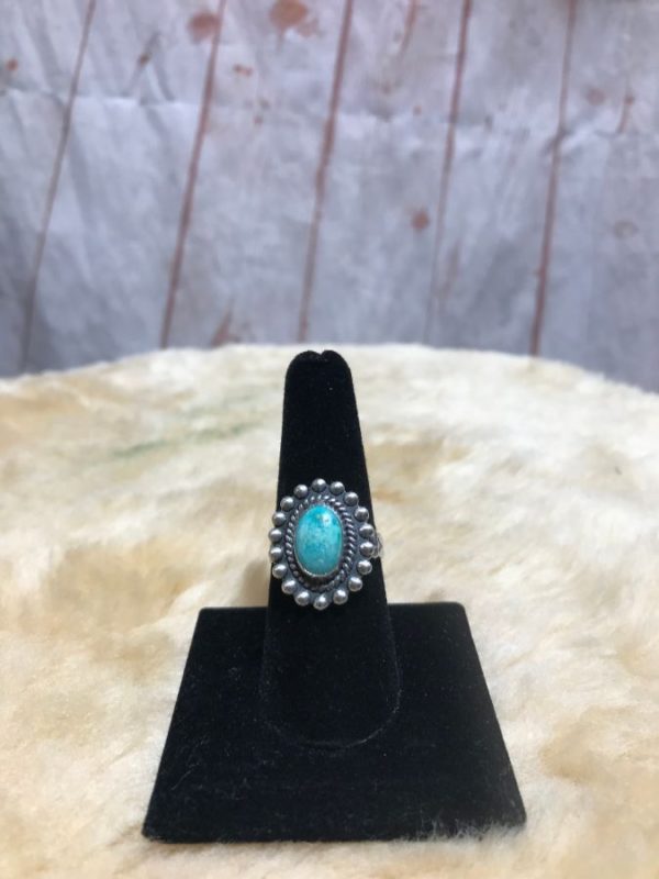 TURQUOISE STONE RING W/ SUN BURST DOTTED DESIGN STERLING SILVER 925 MOUNTING & SIGNED