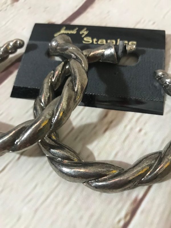 Earrings, chunky, twisted metal hoops, dead-stock, gunmetal gray