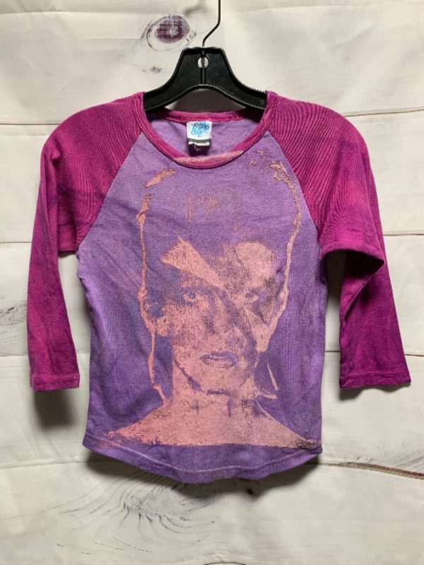 So Fly T-shirt, pullover, raglan sleeves, ringer Tee, two toned with contrasting sleeves, David Bowie, Sound + Vision, red violet/purple/pink/green, size M Small fit