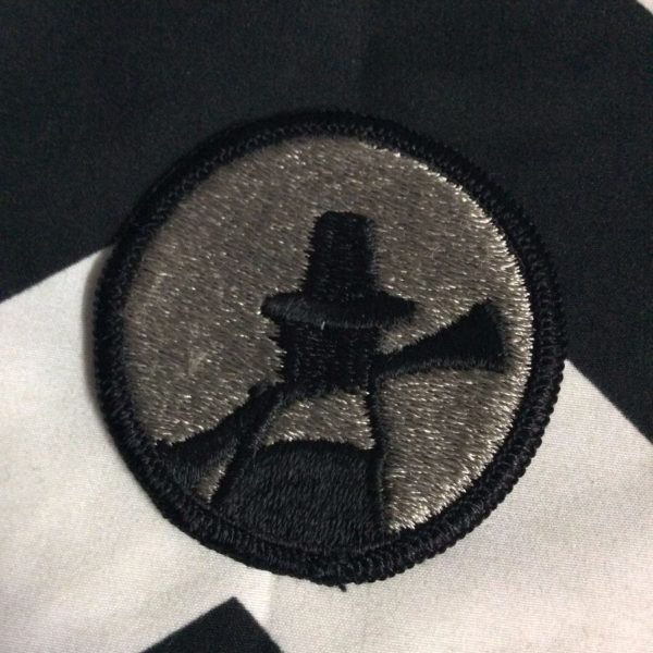 EMBROIDERED PATCH, U.S. 94TH ARMY RESERVE COMMAND, WWI, PURITAN DESIGN, BLACK/GRAY, SIZE 2.5″