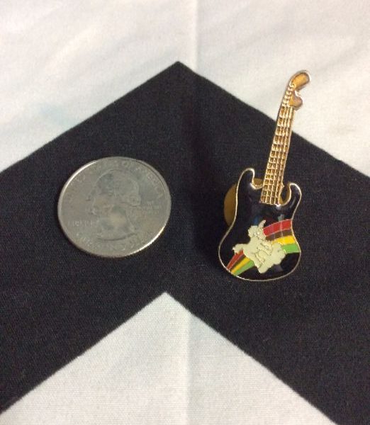 Pin, guitar with unicorn and rainbow, black/white/red/green/yellow