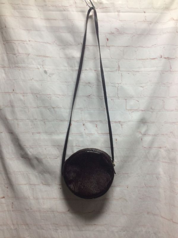 ROUND VINTAGE PURSE W/ FAUX SNAKESKIN EMBOSSED LEATHER & SHOULDER STRAP