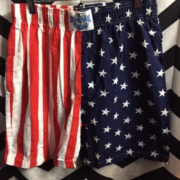 Shorts, elastic waist, American flag design, red/white/blue, size L