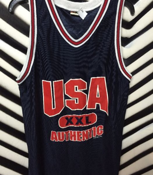 USA authentic basketball jersey, screen print design, navy/red, size XXL