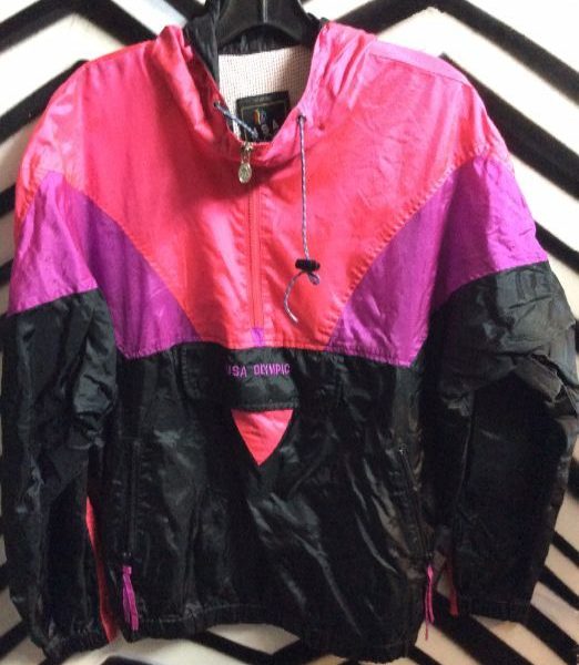 USA OLYMPICS PULLOVER WINDBREAKER W/NEON COLOR-BLOCK