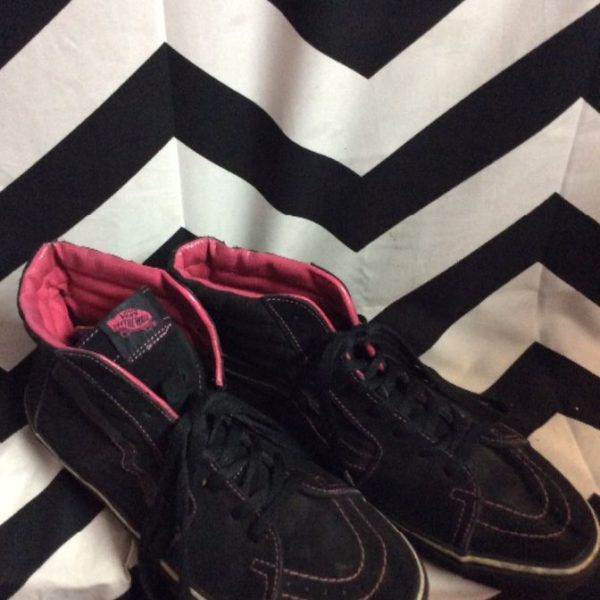 Vans sneakers, lace-up, high-tops, old skool, contrast stitching, black/pink, size 12