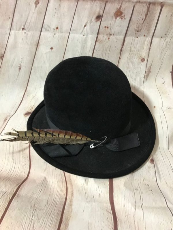 VELVET HAT W/ RIBBON BAND & FEATHER