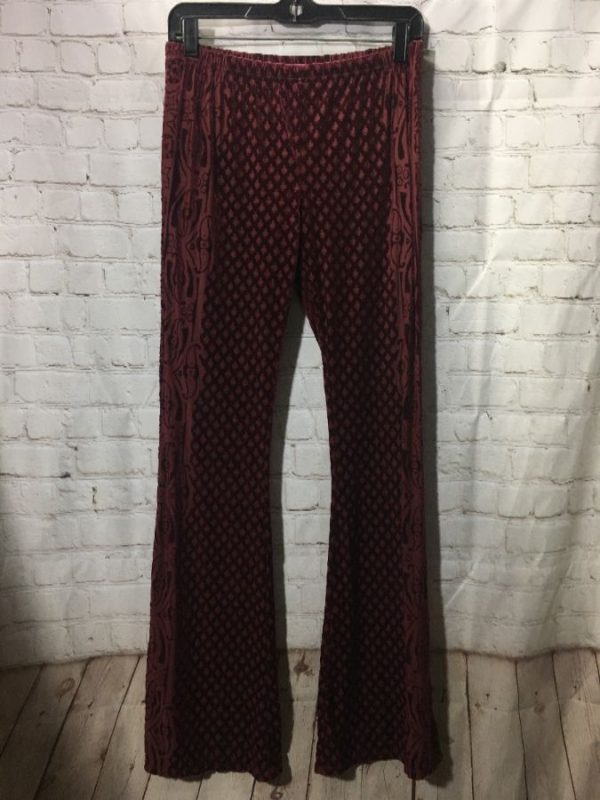 BOHO LOW HIP BELL BOTTOM PANTS BURN-OUT FLOCKED VELVET PATTERN