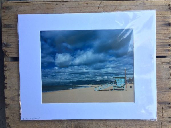 Venice Beach Photos mounted photograph, Venice California ocean & beach scene, local photographer Ray Rae, navy blue/blue/tan, size 10″ x 13″