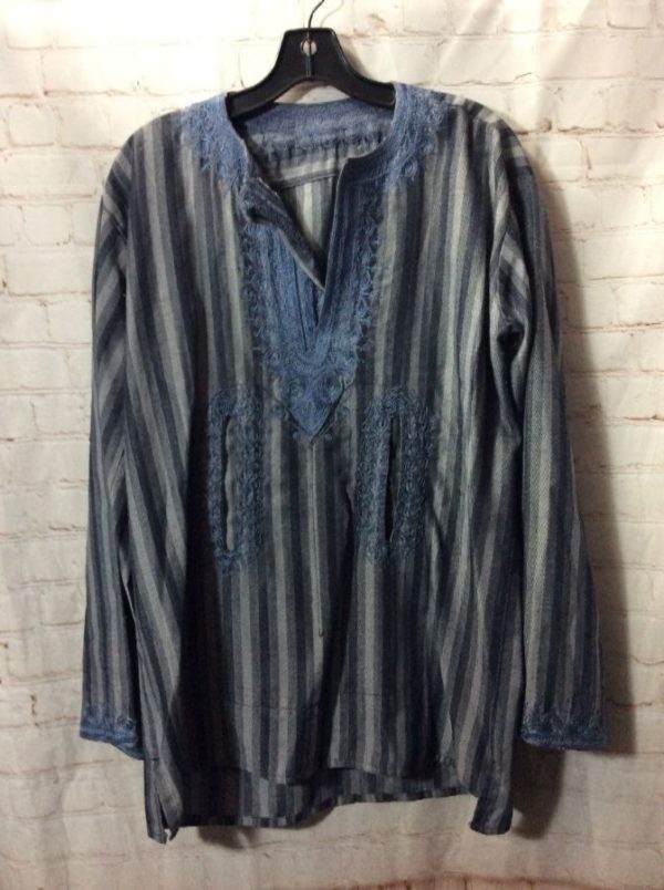 VERTICAL STRIPED DESIGN EMBELLISHED W/ CHAINSTICH TUNIC