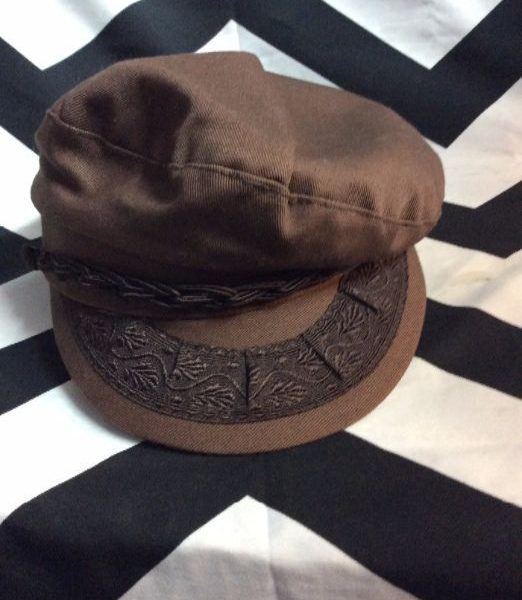 Vintage cap, 100% cotton, Greek fisherman’s style, silk lining, made in Greece, brown/red, size 6-7/8