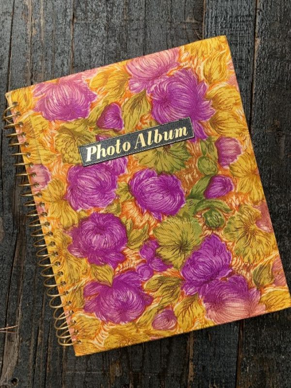 VINTAGE 1960’S PHOTO ALBUM, SPIRAL BINDING, FLORAL DESIGN COVER, ORANGE/PINK