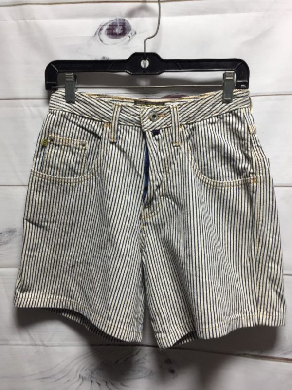 VINTAGE 1980’S ESPRIT SHORTS RAILROAD STRIPED DENIM SHORTS W/ BUTTON FLY