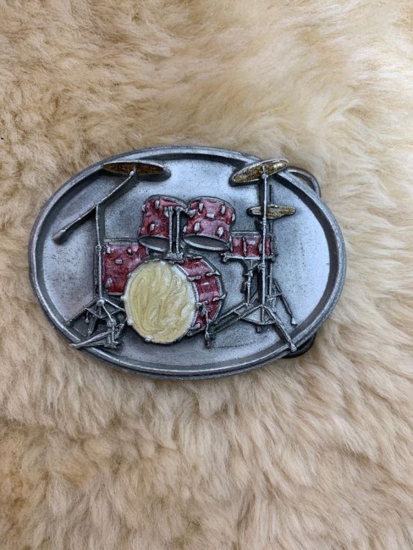 VINTAGE 1989 ENAMELED DRUM SET BELT BUCKLE