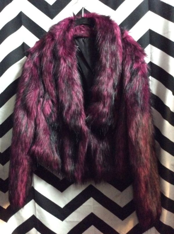 1990’s vintage jacket, long shaggy fur, Fuzzy Monster fur club, magenta/black, size M kids