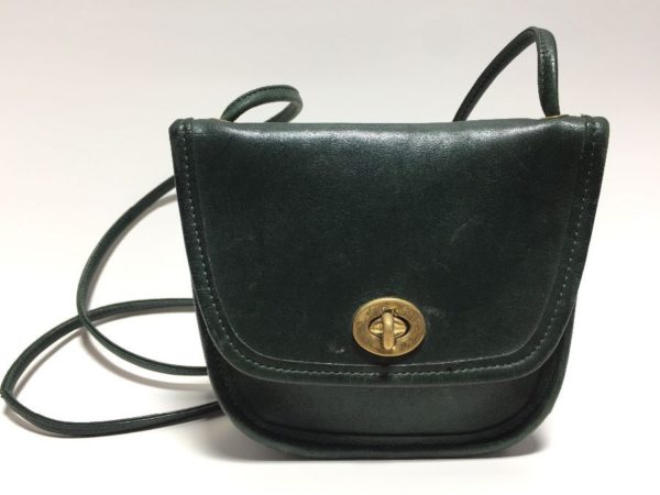 VINTAGE 1990S SMALL MINI LEATHER COACH BRAND CROSSBODY PURSE WITH BRASS HARDWARE – as is