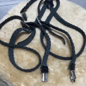 BRAIDED LEATHER SUSPENDERS W/ SILVER METAL HARDWARE