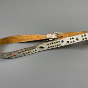 AS-IS LIGHTLY DISTRESSED HAND STUDDED SILVER PAINTED LEATHER BELT