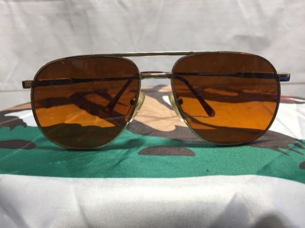 VINTAGE AVIATOR FRAME SUNGLASSES GOLD FRAME DARK ORANGE LENSE – AS IS