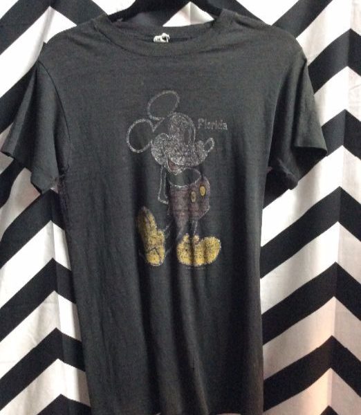 Vintage T-shirt, Mickey Mouse, Florida, faded graphic, hole under arm, faded black as is