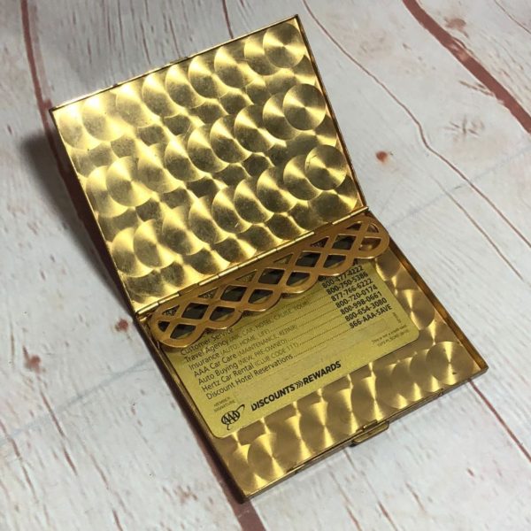 VINTAGE STRIPED BRASS CIGARETTE CASE/CARDHOLDER W/ DECORATIVE INTERIOR
