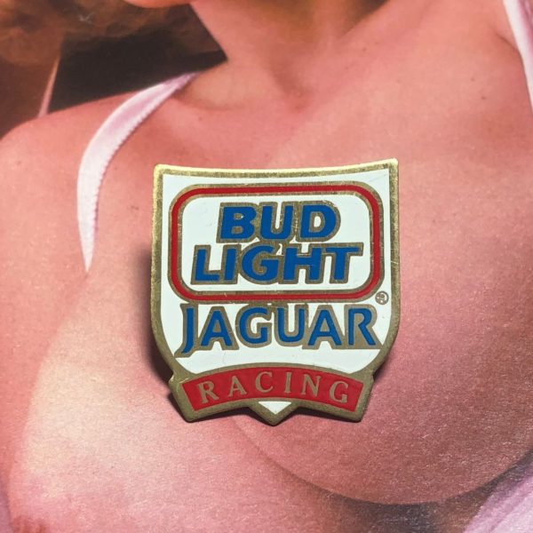 Rare vintage enamel pin, Jaguar racing, Bud Light, white/black/red/gold