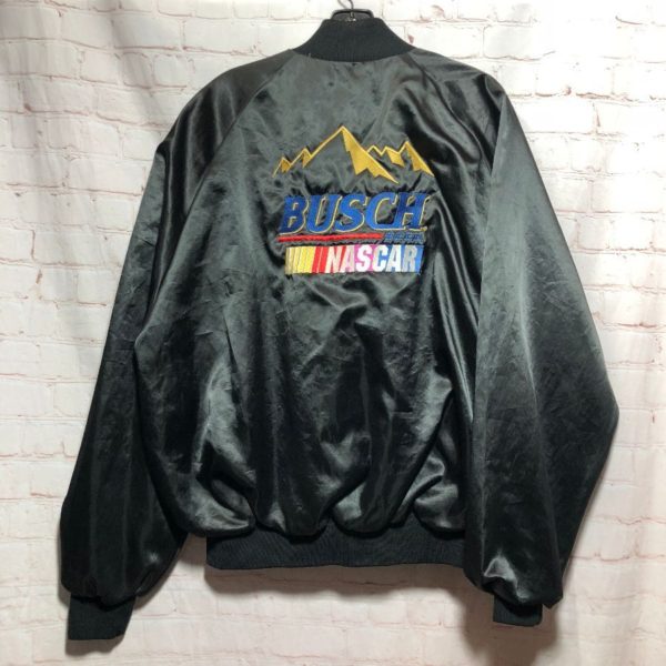 VINTAGE BUSCH-NASCAR SATIN BUTTON-UP JACKET W/ EMBROIDERED LOGOS