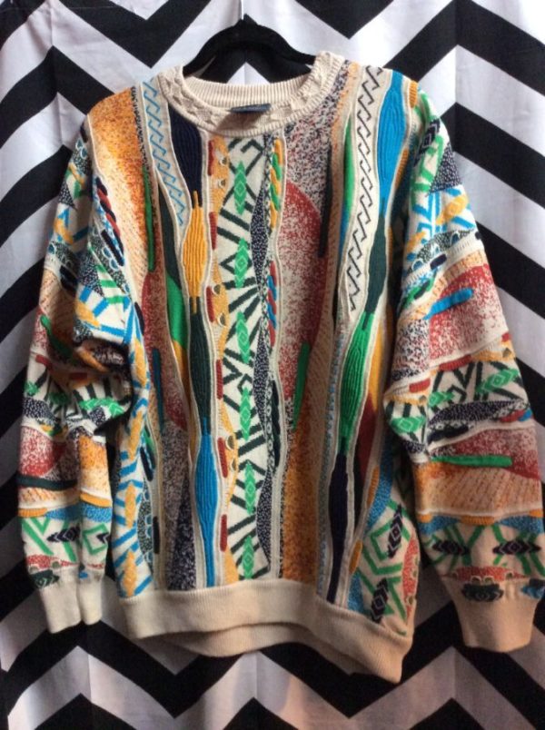 VINTAGE COOGI STYLE COTTON SWEATER ABSTRACT PATTERN