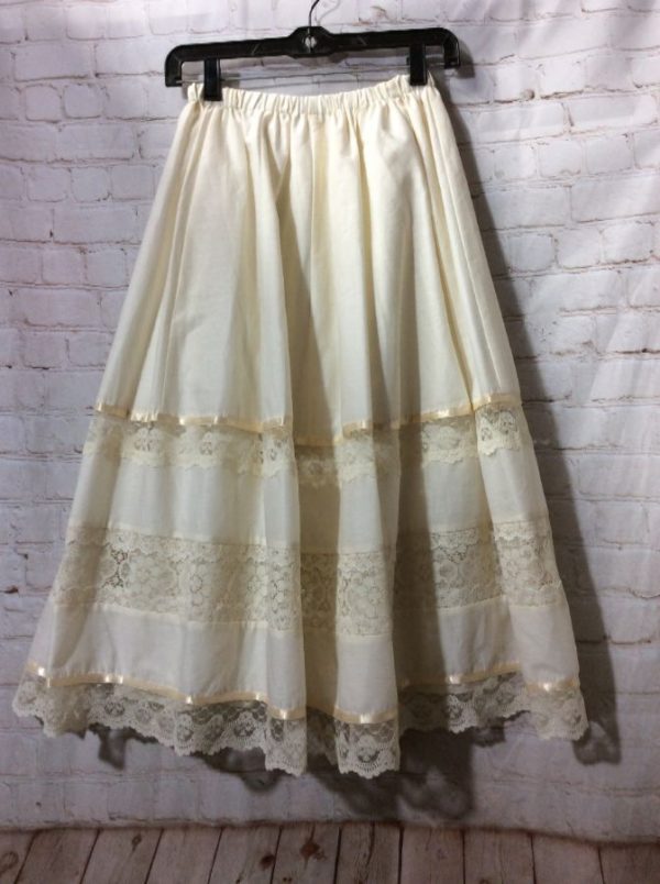 VINTAGE ELASTIC WAIST SKIRT W/ RIBBON & LACE