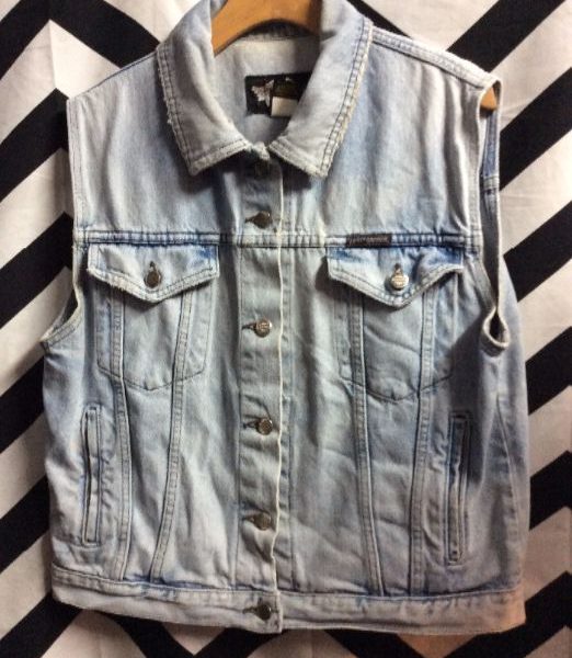 VINTAGE HARLEY DAVIDSON DENIM VEST – EMBROIDERED LOGO FULL BACK – ACID WASHED