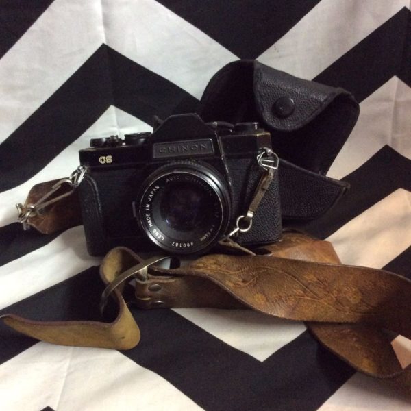 VINTAGE FILM CHINON CAMERA W/CASE & LEATHER STRAP