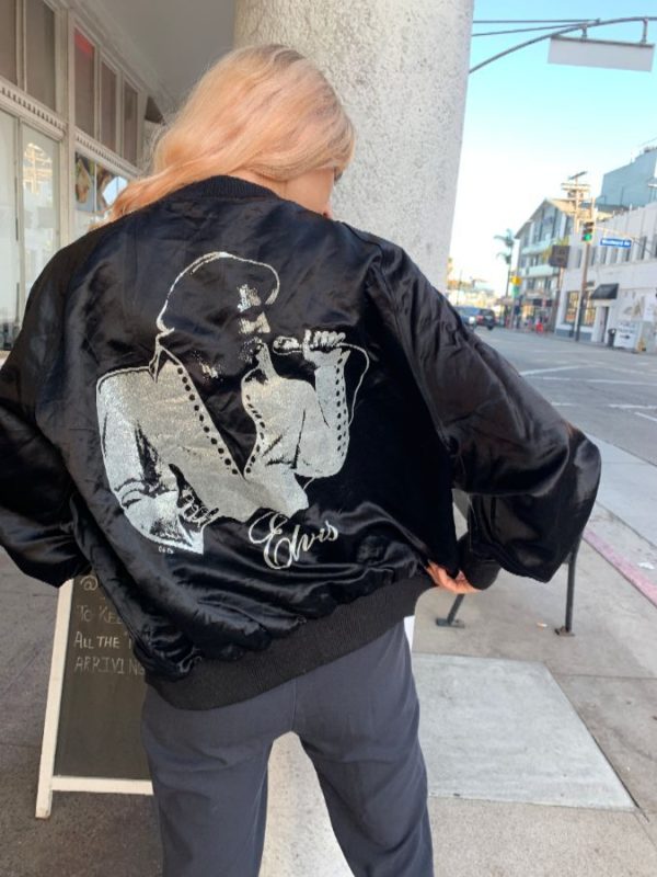VINTAGE GLITTERY ELVIS PRINTED ACETATE BOMBER JACKET
