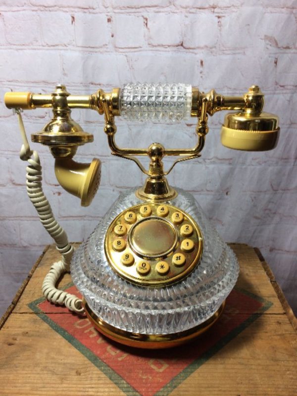 VINTAGE CRYSTAL FRENCH ANALOG PHONE W/ PUSH BUTTONS