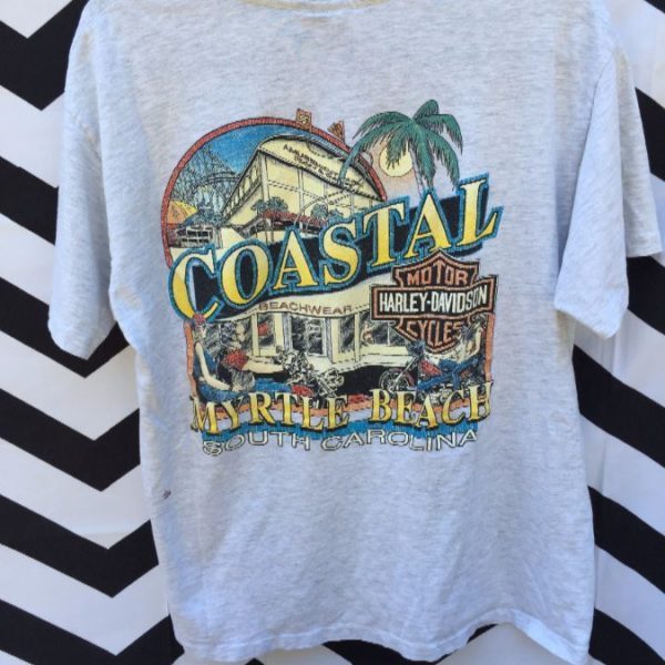 VINTAGE 1993 HARLEY DAVIDSON MOTORCYCLES T-SHIRT, COASTAL MYRTLE BEACH SOUTH CAROLINA, SCREEN PRINTED DESIGN