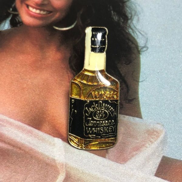 VINTAGE ENAMEL PIN, JACK DANIELS, TENNESSEE WHISKEY, LIQUOR BOTTLE, CREME/BLACK/GOLD