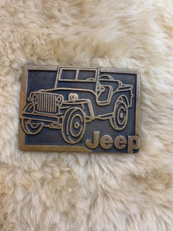 VINTAGE JEEP HEAVY BRONZE RECTANGLE BELT BUCKLE