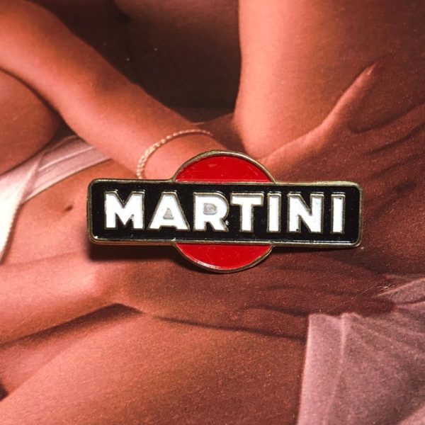 Vintage enamel pin, Martini logo, black/white/red/silver