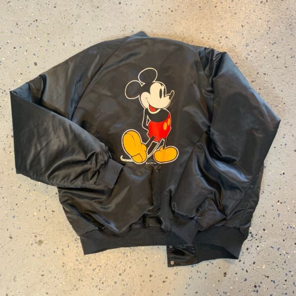 VINTAGE MICKEY MOUSE SATIN JACKET CHALK LINE W/ LARGE BACK GRAPHIC