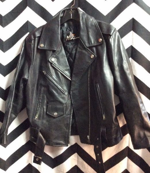 Vintage motorcycle jacket, zip-up, clean lines, black perfect condition