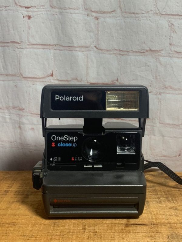 VINTAGE POLAROID CAMERA, ONE STEP, CLOSE-UP, NECK STRAP, BLACK, SIZE N/A
