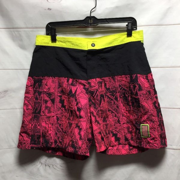 VINTAGE OP NEON FUNKY PRINTED SWIM TRUNKS