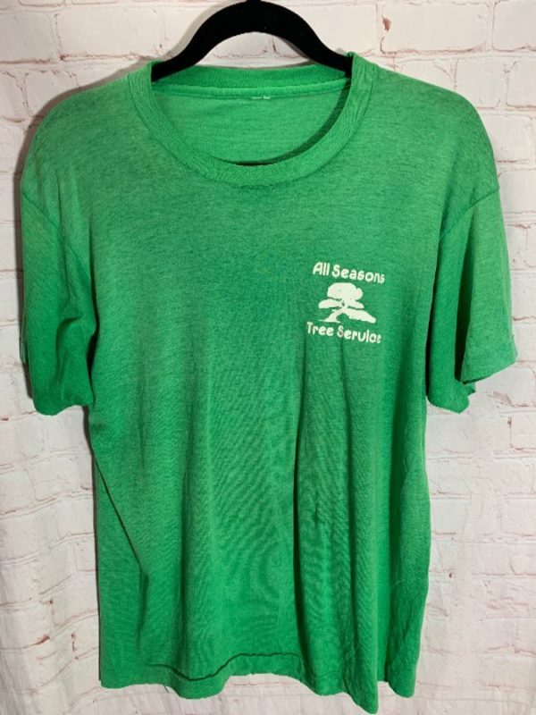VINTAGE PAPER-THIN W/ ALL SEASON TREE SERVICE & BONSAI DESIGN T-SHIRT