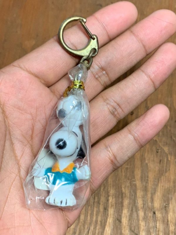 VINTAGE PEANUTS W/ SNOOPY & SOCCER BALL KEYCHAIN