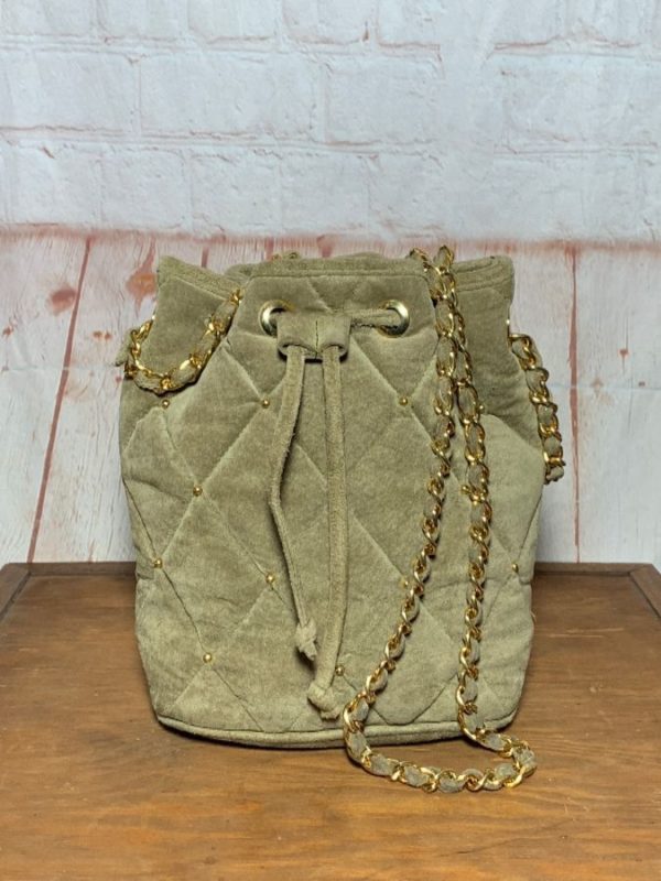 VINTAGE QUILTED SUEDE CHANEL STYLE BUCKET BAG W/ CHAIN STRAPS