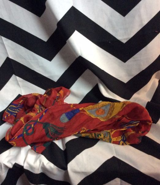 VINTAGE SCARF – SILK – SHEER W/ROPES & BRIDLES PRINT DESIGN