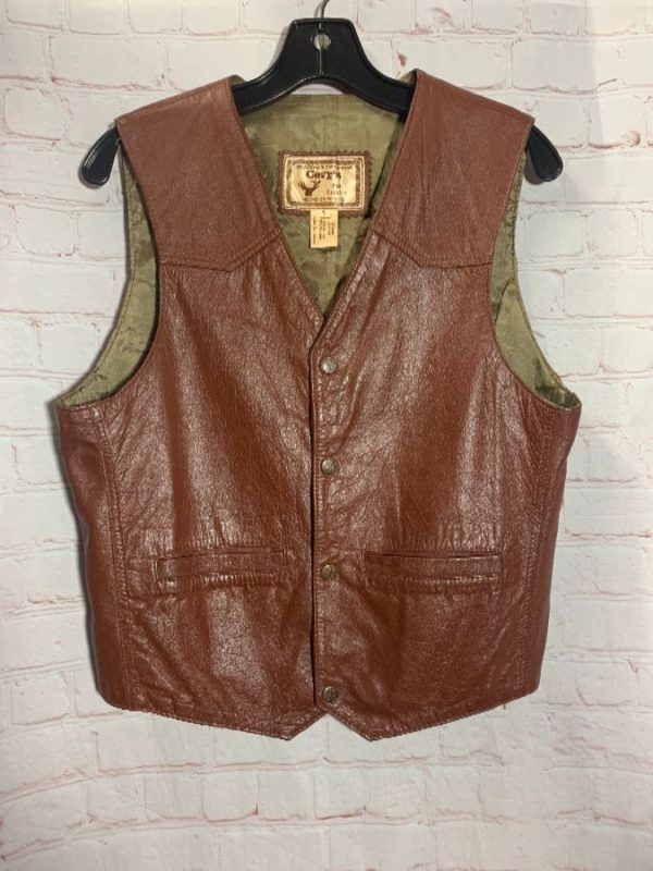 VINTAGE SOFT GENUINE LEATHER VEST W/ SNAP-UP BUTTONS